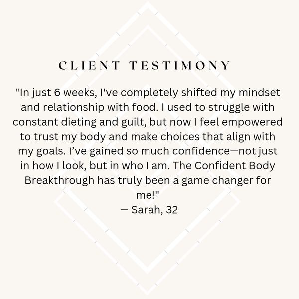 Through personalized coaching and a proven, step-by-step framework, we guide you on a transformative journey to build a healthy, balanced relationship with food and your body. With expert support, you'll learn how to tune into your body’s needs, break free from the cycle of guilt and restriction, and develop the confidence to make lasting, empowered choices.